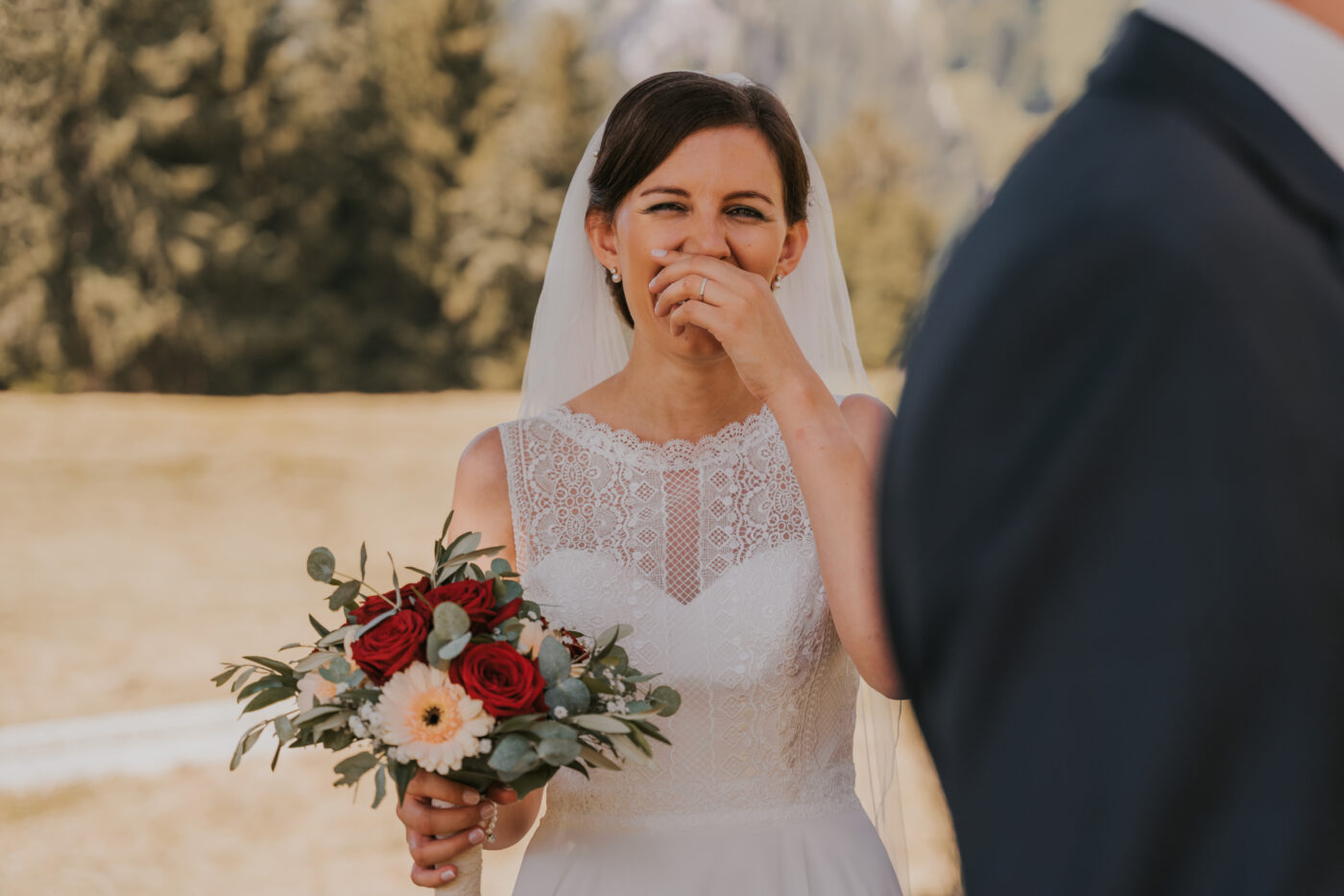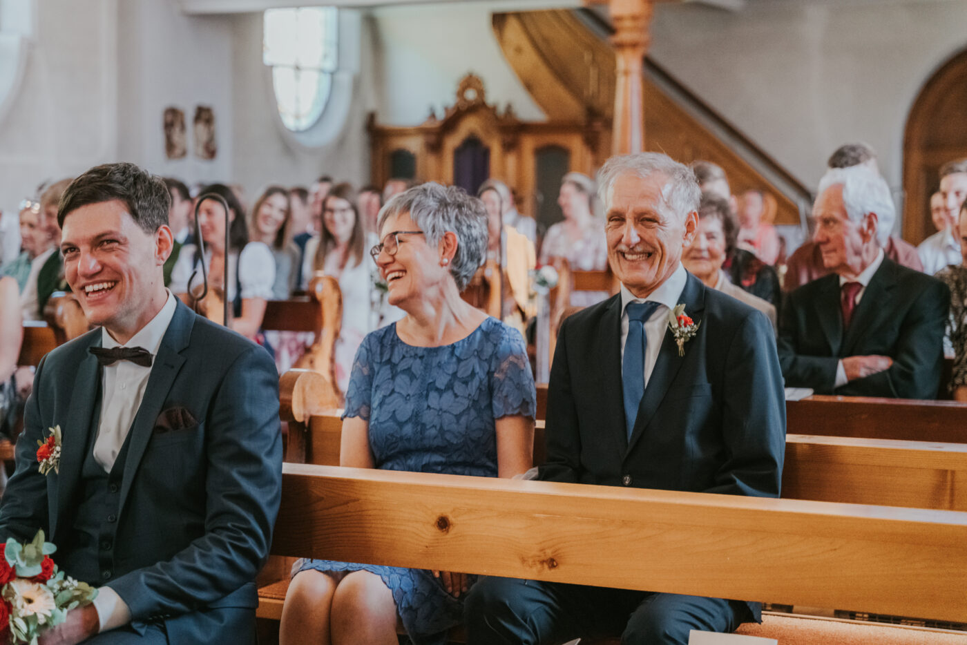 Nach dem Paarfotoshooting folgte dann die Trauung. In der wunderschönen Kirche in Daalas im Klostertal fand dann die kirchliche Trauung statt. In der Kirche durften wir einzigartige Aufnahmen der beiden machen. Die Bilder sind voller Emotionen und auch sentimentale Aufnahmen der Gäste durften nicht fehlen. Wir lieben es, emotionale Momente zu fotografieren. Denn dabei fängt man oft spontane Situationen ein, die dann ganze Geschichten erzählen.