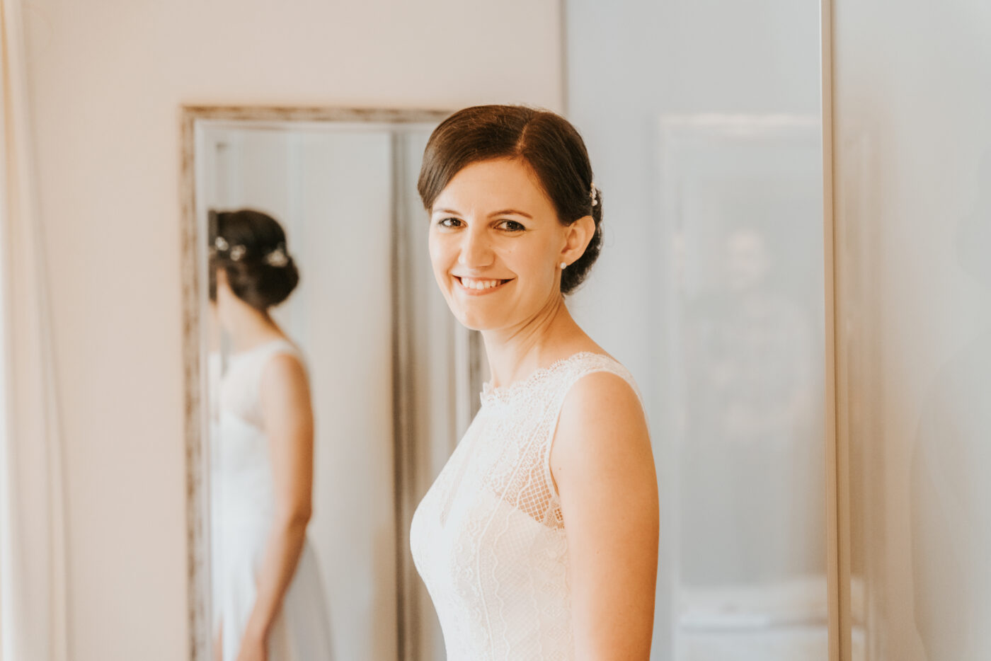 Diese Hochzeit war wieder mal sehr abwechslungsreich. Bei dieser Hochzeit starteten wir wieder mit einem besonderem Getting Ready Fotoshooting. Die Braut und der Bräutigam richten sich für diesen Tag in verschiedenen Räumen. Sie sehen sich also noch nicht. Erst beim Paarfotoshooting oder auch First-Look haben sich die beiden gesehen. Was für ein Gänsehautmoment. Perfekt, um gefühlvolle Fotos zu machen. Auch das Wetter war auf unserer Seite. Das heißt, es konnte ohne Probleme wunderschöne Bilder draußen gemacht werden.