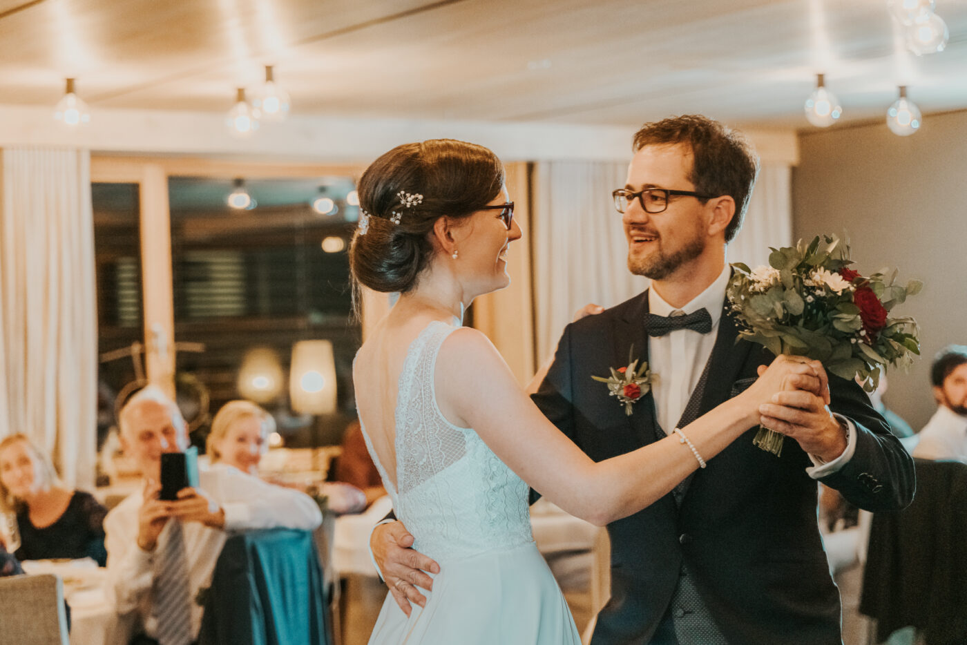 Gerne sind wir auch am Abend noch bei der Hochzeit dabei. Am Abend entstehen oft auch noch lustige Aufnahmen und die Atmosphäre ist oft schon um vieles lockerer. Gemeinsam stößt man auf den Hochzeitstag des Brautpaares an. Gemeinsam wird gegessen, getrunken, getanzt und Spaß gehabt. Spiele von den Gästen sind oft auch noch Teil des Abendprogramms.