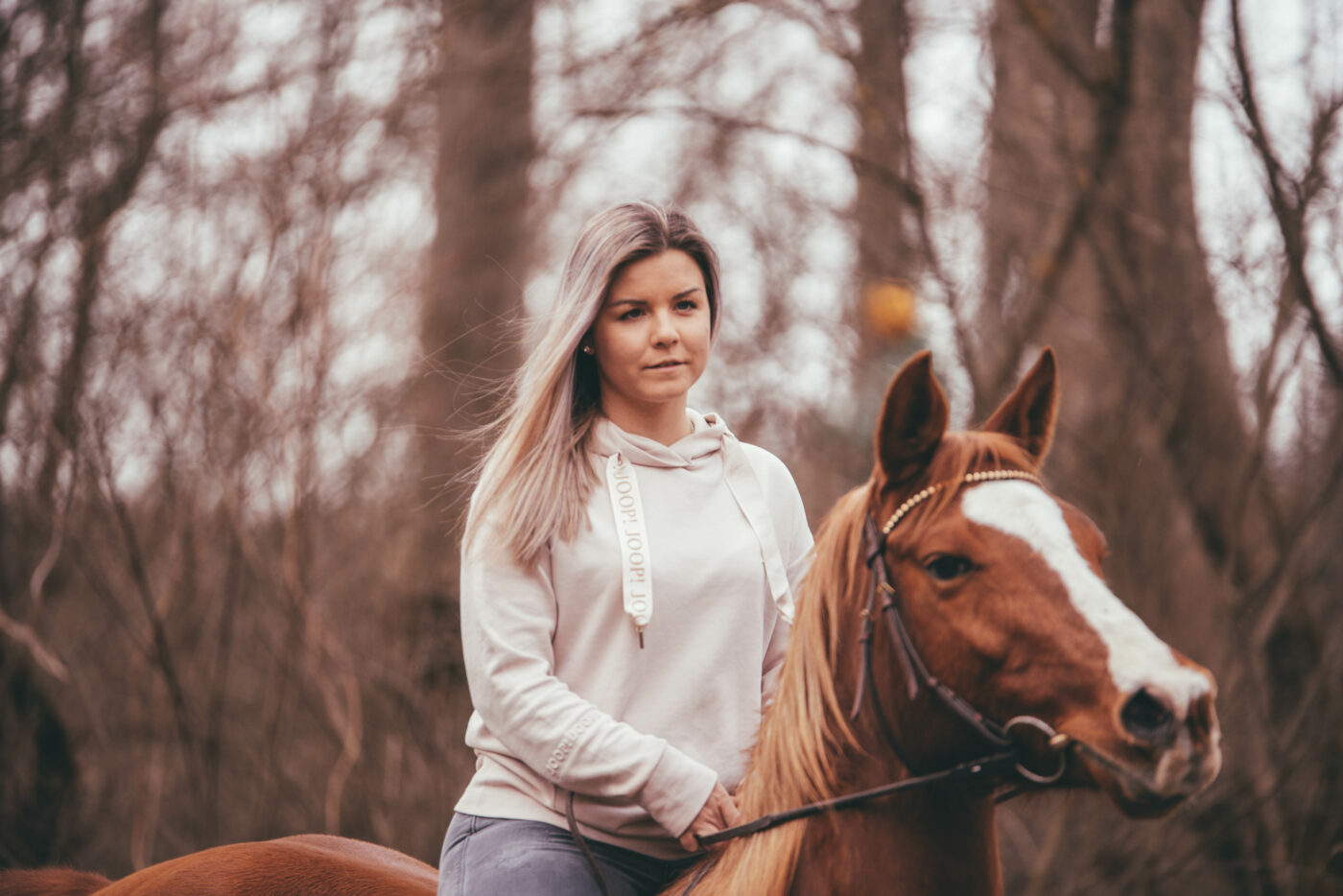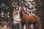 Nun zu dir und der Frage, welche Kleidung am besten für ein Shooting ist. Zieh auf jeden Fall ein Kleidungsstück an, in dem du dich wohlfühlst. Die Wahl der Kleidung ist natürlich auch von der Art des Shootings abhängig. Möchtest du eher schlichte Portraitbilder? Dann kannst du zum Beispiel ein Kleid anziehen, dass farblich auch zu deinem Pferd passt. Achtung es sollte lang genug sein, falls du auch auf das Pferd sitzen möchtest. Auf den Bildern ist ein Kleid immer schön, ist das aber dein Stil? Du kannst auch einfach eine feine Hose und ein schöner Pullover anziehen. Mein Tipp: Schau, dass dein Outfit farblich, aber auch stilistisch (elegant, sportlich, …) zu dir und deinem Pferd passt. Die Bilder sollen schön harmonisch wirken. 🥰